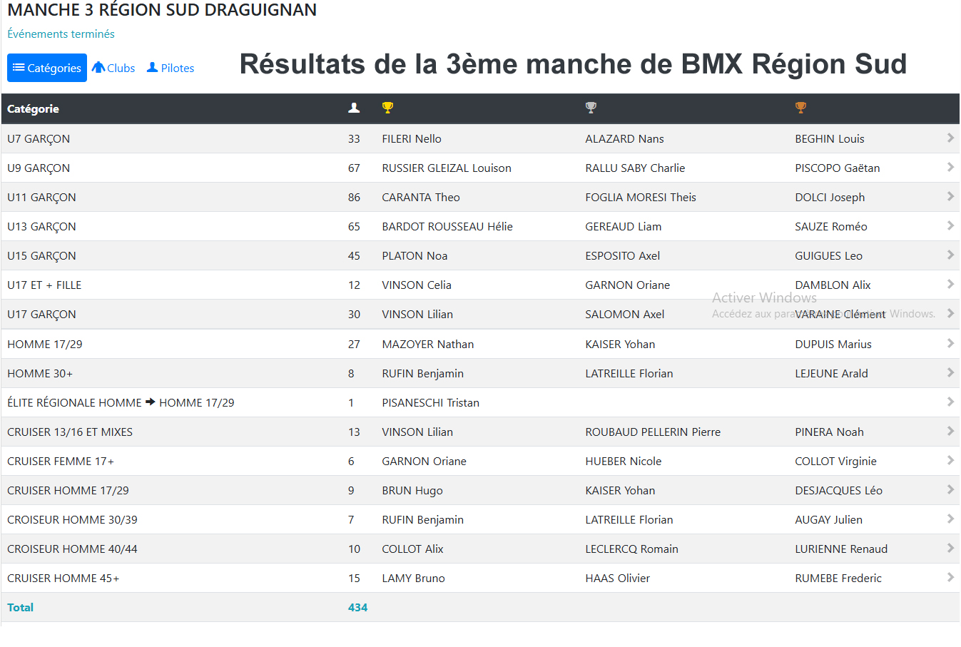 ésultats du championnat départemental BMX du 23 mars