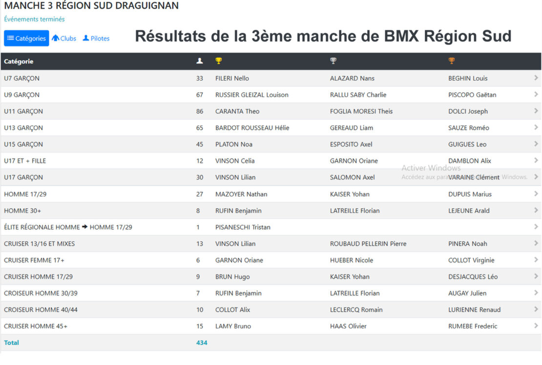 Résultats Epreuve BMX